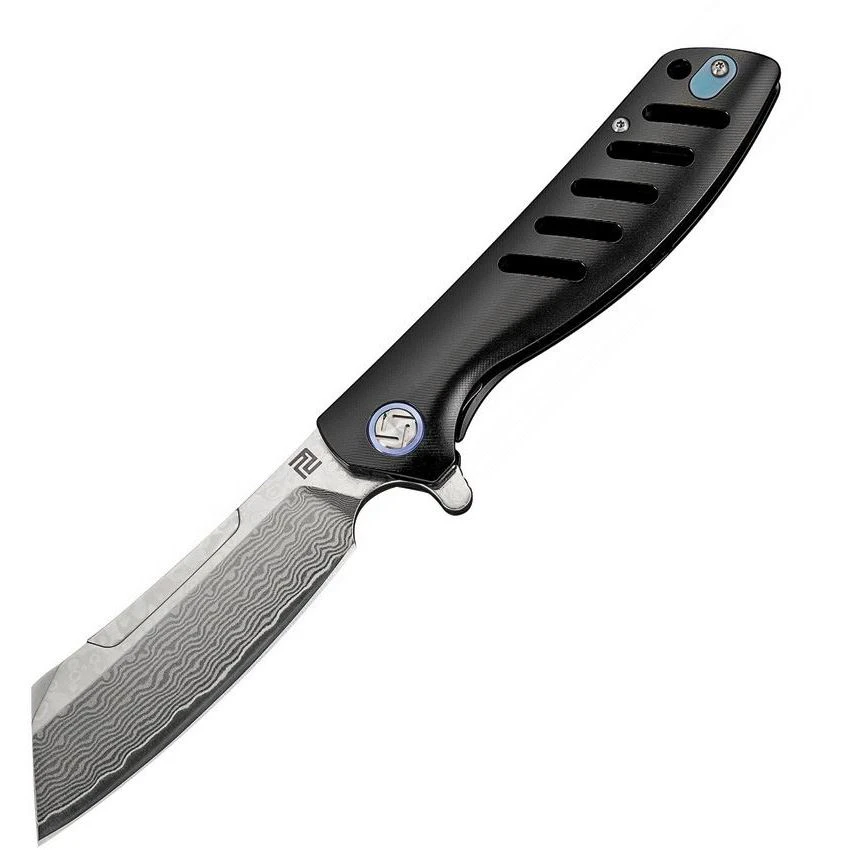 - Artisan 1815GSDBK – Damascus Blade Tomahawk Framelock Knife with Black Titanium Handle