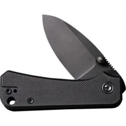 Model – CIVC19068S2. Civivi 19068S2 – Baby Banter Linerlock Black. 3.13″ (7.95cm) closed. 2.25″ (5.72cm) black stonewash finish Nitro V steel blade. Black G10 handle. Lanyard hole. Pocket clip. Thumb stud. Black nylon zippered storage case. Boxed. Made in China.