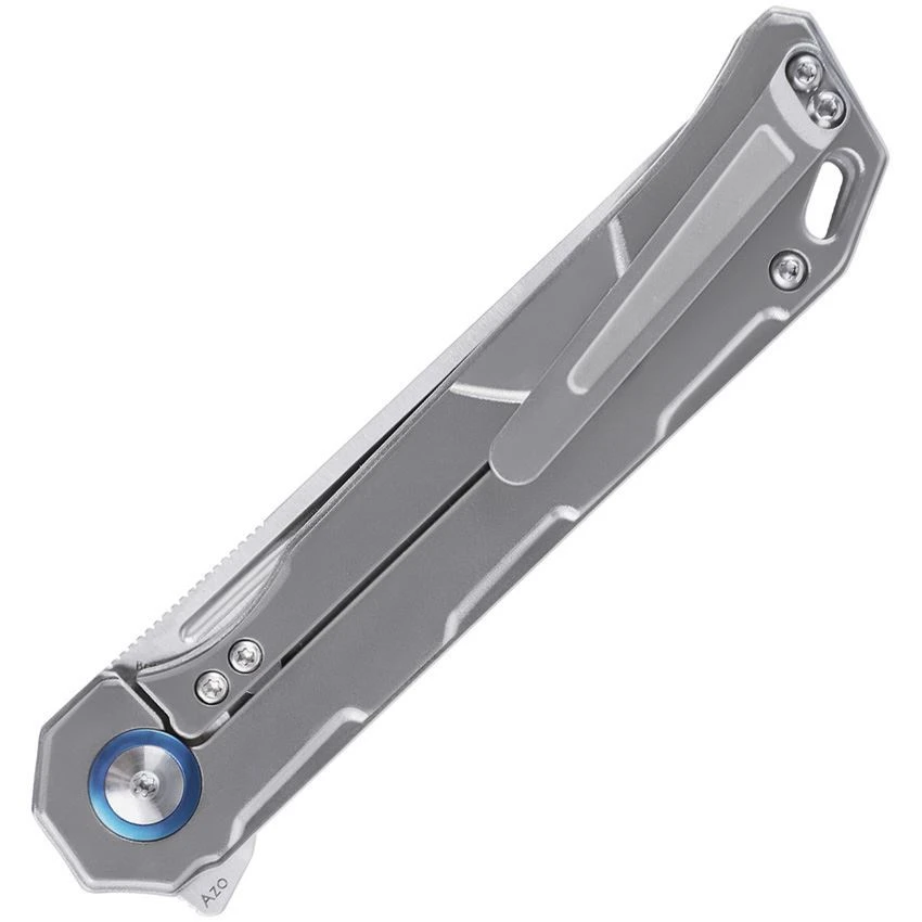 Model/Part Number – KI4458T4. Kizer Begleiter Framelock Ti. 4.5″ (11.43cm) closed. 3.5″ (8.89cm) satin finish S35VN stainless tanto blade. Gray titanium handle. Extended tang. Lanyard hole. Pocket clip. Black nylon pouch. Boxed. Made in China.