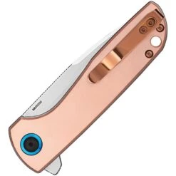 - 3.5″ AUS-8 stainless partially serrated blade with dual thumb studs